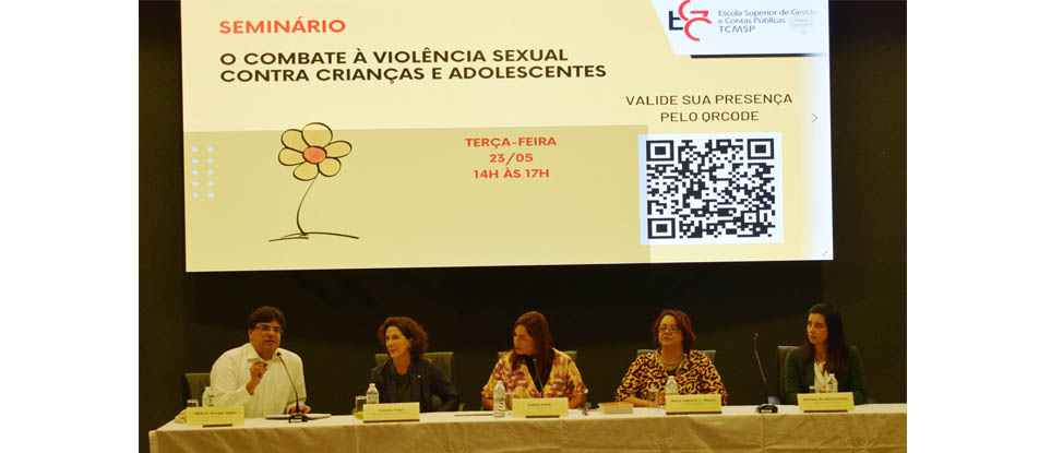 Na tarde desta terça-feira, 23 de maio, ocorreu, no auditório da Escola de Gestão e Contas Públicas (EGC) do Tribunal de Contas do Município de São Paulo (TCMSP), o seminário “O combate à violência sexual contra crianças e adolescentes”. Com participação da diretora-presidente do Instituto Liberta e ex-secretária de Assistência e Desenvolvimento Social do município de São Paulo, Luciana Temer, da diretora do Núcleo de Apoio e Acompanhamento para Aprendizagem (NAAPA) da Secretaria Municipal de Educação (SME), Márcia Andrea Bonifácio da Costa Oliveira, e da médica legista e sexóloga forense Mariana da Silva, o evento foi mediado pela pedagoga e mestranda da PUC-SP e servidora da EGC/TCMSP, Samira Saleh e contou ainda com a participação do professor da EGC, Silvio Gabriel Serrano Nunes, na qualidade de debatedor. O conselheiro dirigente da EGC, João Antonio da Silva Filho, o conselheiro presidente do TCMSP, Eduardo Tuma, o diretor presidente da EGC, Ricardo Panato, e o chefe de Gabinete da Escola, Marcos Barreto, também prestigiaram o encontro, que reforçou a necessidade de romper com a invisibilidade da violência sexual cometida contra as crianças e adolescentes, um crime grave e bastante frequente, mas cuja verdadeira dimensão ainda é pouco conhecida por conta da subnotificação das ocorrências e pela omissão de quem as presencia.