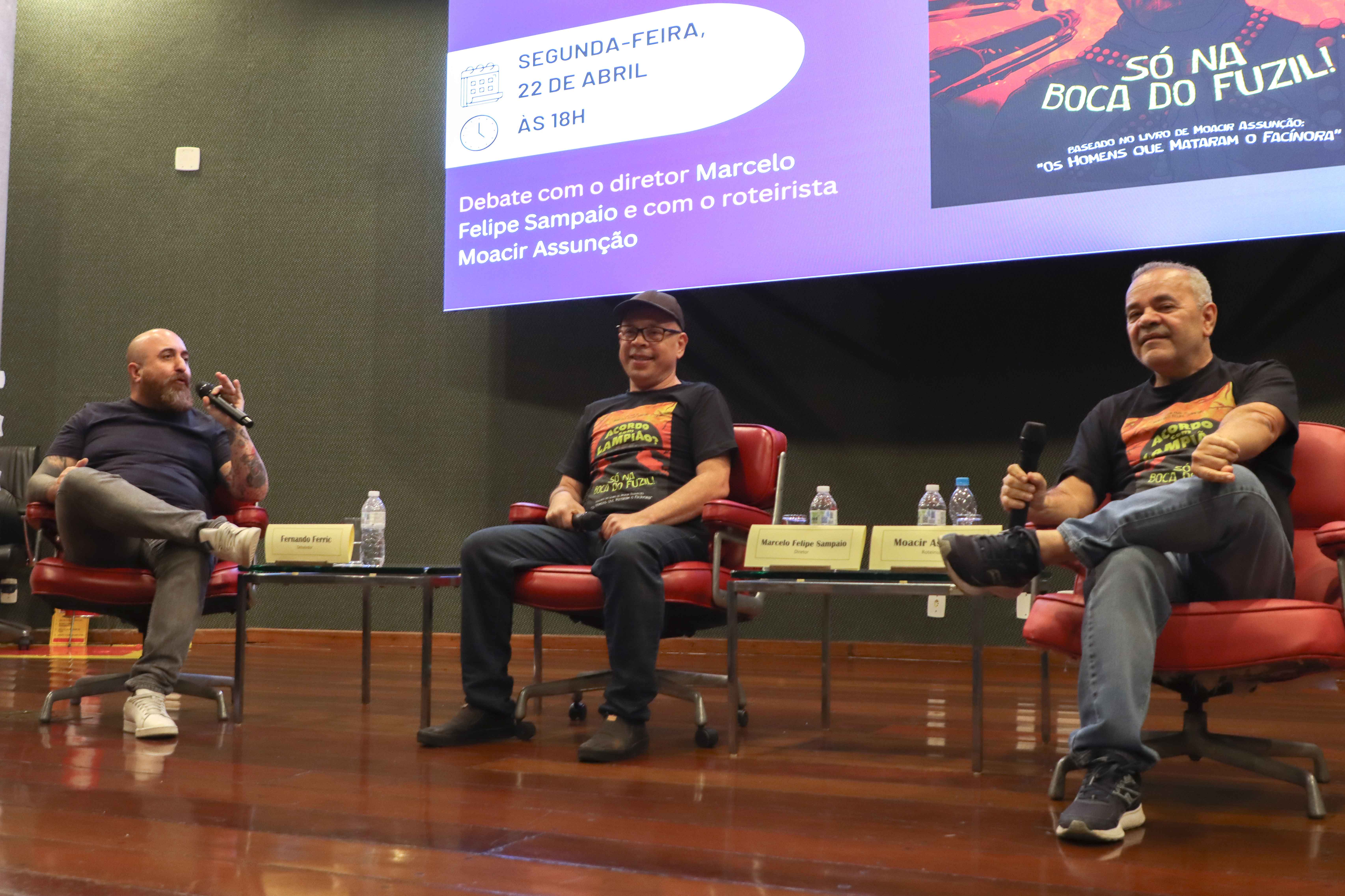 O auditório da Escola Superior de Gestão e Contas Públicas (EGC) se transformou em sala de cinema para exibir o documentário “Acordo com Lampião? Só na boca do fuzil”. Lançado neste mês de abril de 2024, o filme foi apresentado gratuitamente pelo Cineclube da Escola, na noite de segunda-feira (22/04). Após a exibição, o público participou de intenso debate, com uma hora de duração, reunindo o diretor Marcelo Felipe Sampaio e o roteirista Moacir Assunção.