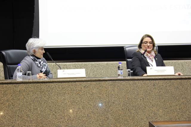 A diretora de conformidade da Eletrobras, Lucia Casasanta, foi a responsável por abordar o "Compliance nas empresas estatais" no segundo painel do simpósio. Com estudos de casos, a especialista trouxe exemplos de projetos e atividades desenvolvidas dentro da própria Eletrobras. "É muito mais difícil implementar o compliance nas empresas estatais porque você tem não só órgãos de controle externo, mas também questões de dano ao erário e dano ao acionista. Quando se está em uma empresa privada, você só se preocupa com os interesses do acionista não com o interesse do governo ou o interesse público propriamente dito", explicou.