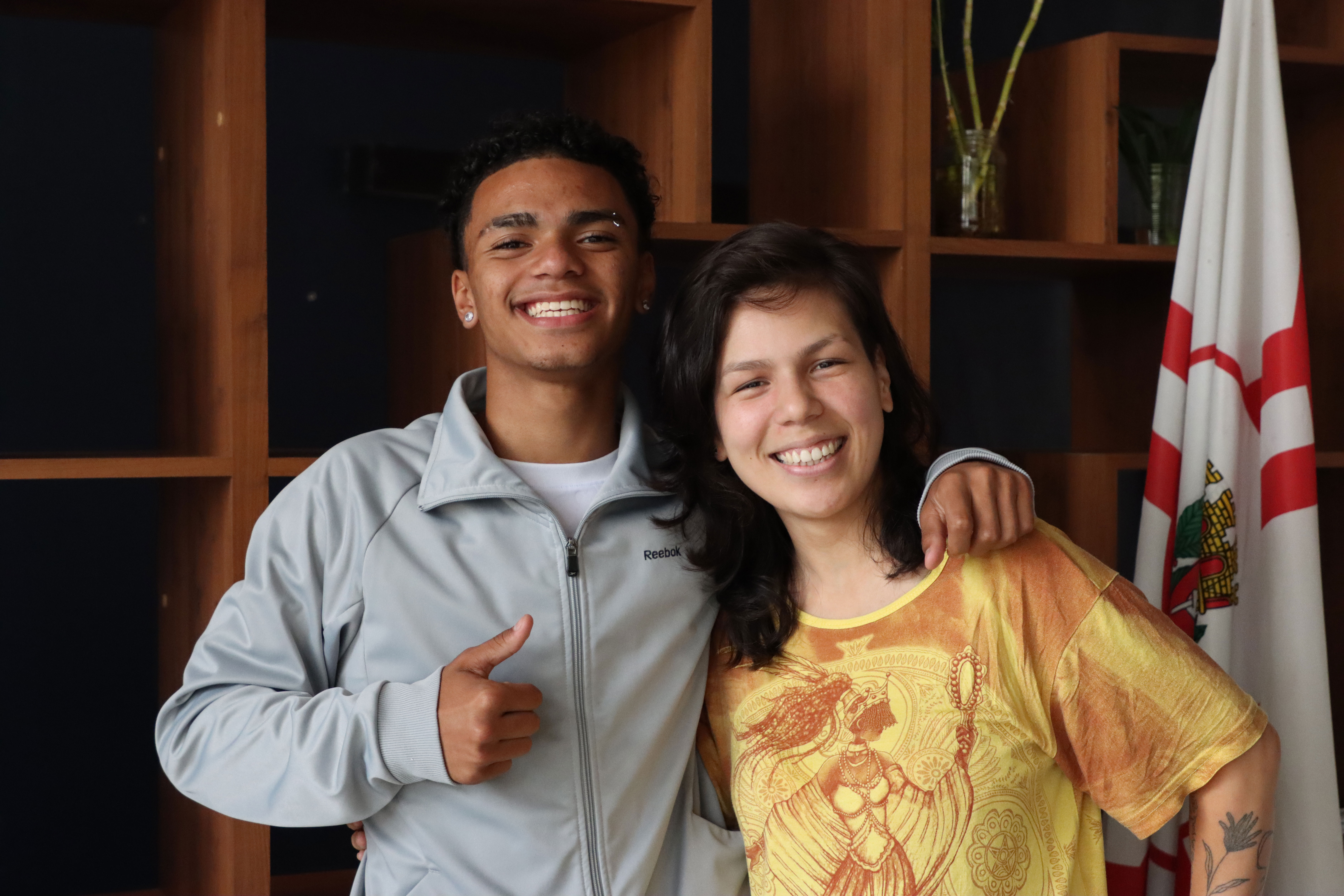 Estudante Luigi Gomes e a professora Maria Luiza Sayuri
